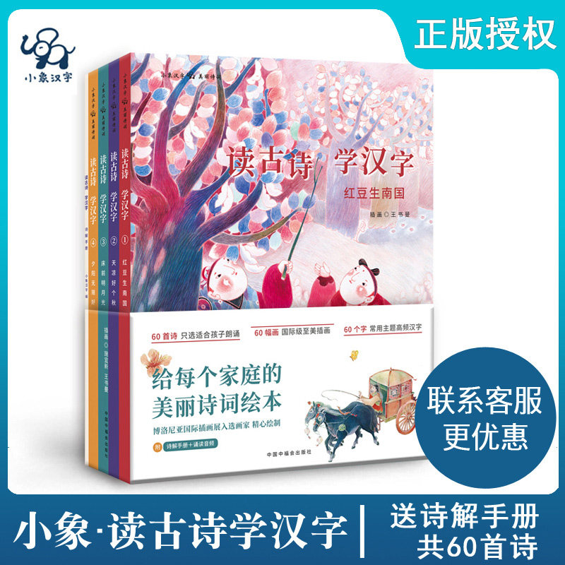 孫儷推薦小象漢字讀古詩學漢字全4冊3 6歲幼兒國學啟蒙寶寶認漢字書象形識字卡兒童早教認知學前看圖識字益智書籍古詩詞繪本