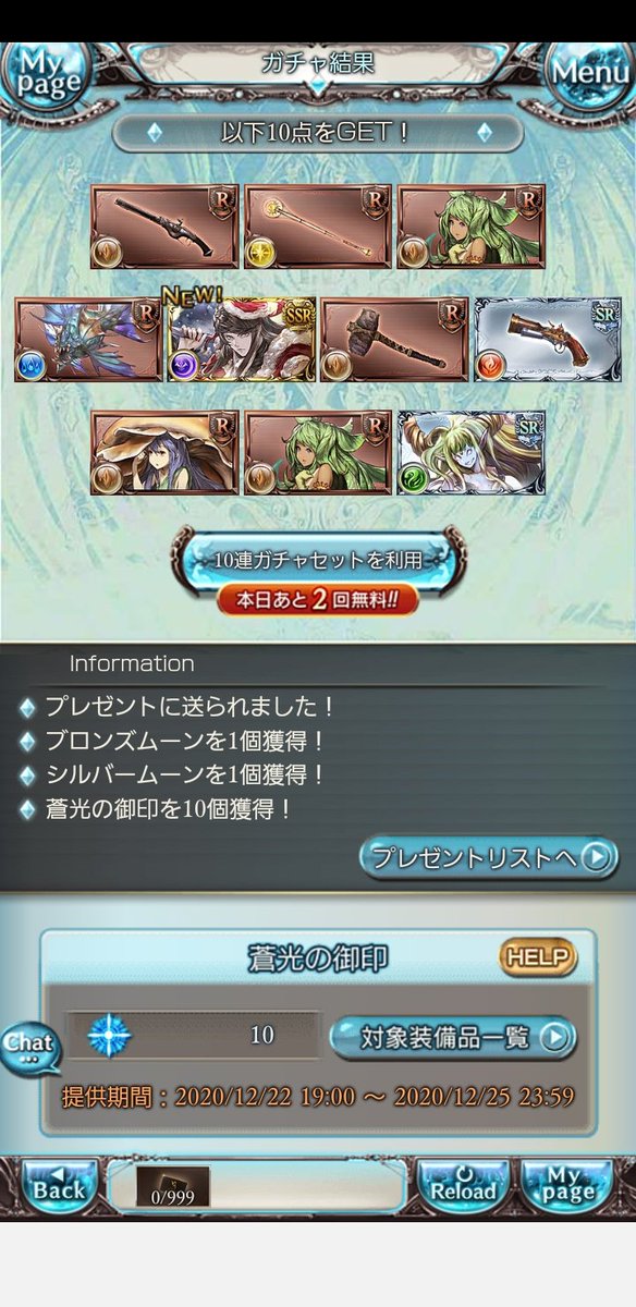 御神 本日の無料10連 クリスマススピナーとクリスマスサリエル グラブル グランブルーファンタジー